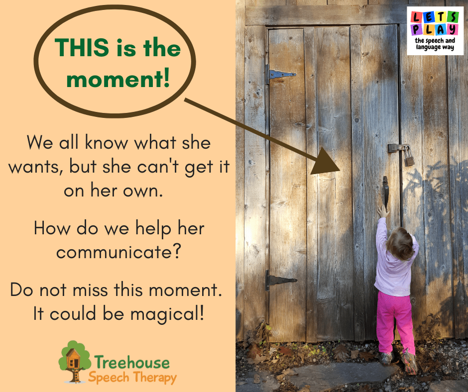 The key to these all-important moments is that you have to capitalize on that sweet spot between knowing what the request is, but BEFORE your toddler starts to get upset or frustrated. If you find the magical moment and use the strategy the best fits your child’s abilities, you are much more likely to see results.